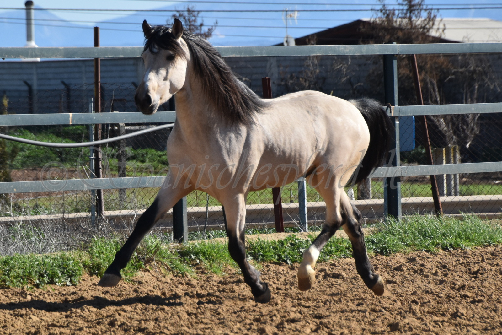 Sehr schicker Andalusierfalbe, geboren 2020, Stockmass 1,62, direkt aus dem Herdenverband und noch vollkommen roh, kennt das Jungpferde-ABC, keine Hengstmanieren, freundlicher Charakter, zutraulich und menschenbezogen.