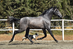 Bandolero ist ein typvoller, bewegungsstarker P.R.E. Hengst, Stockmass 1,59, geboren 2020, wuchs bisher im Herdenverband auf und wurde nun aufgestallt. Bandolero hat keinerlei Hengstmanieren, ist robust und sozial und kennt bisher das Jungpferde-ABC wie putzen, abduschen, führen usw. , er ist freundlich, neugierig und verspielt und schon sehr menschenbezogen. Ein toller Junghengst mit erstklassigen Charakter und tollen Bewegungen. Top Abstammung!