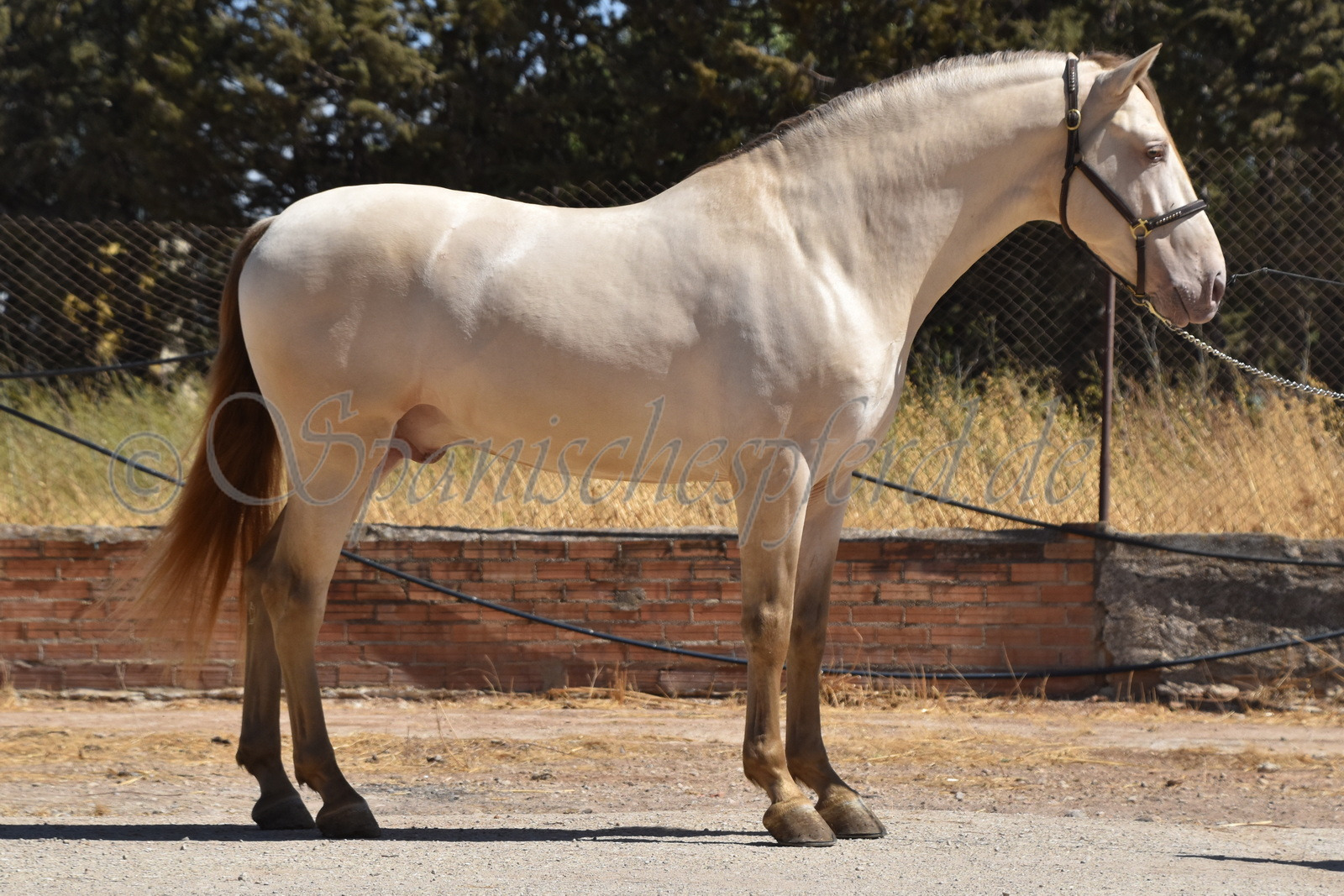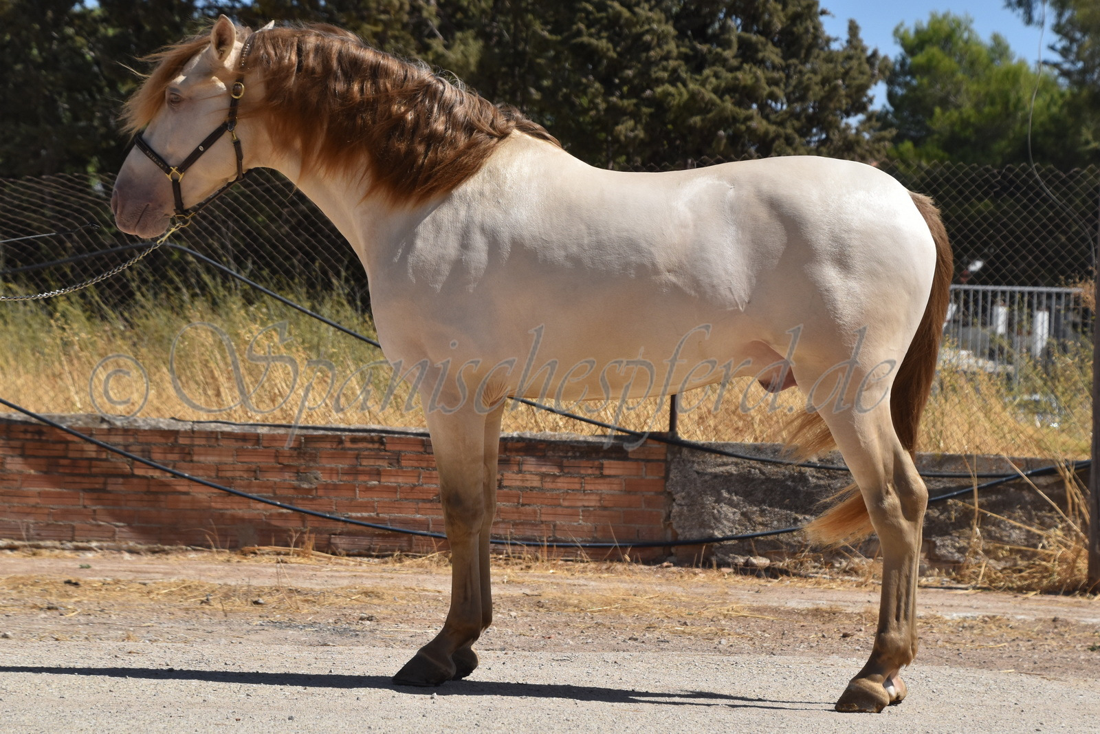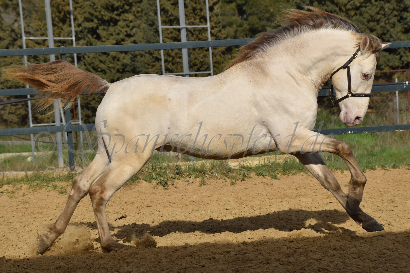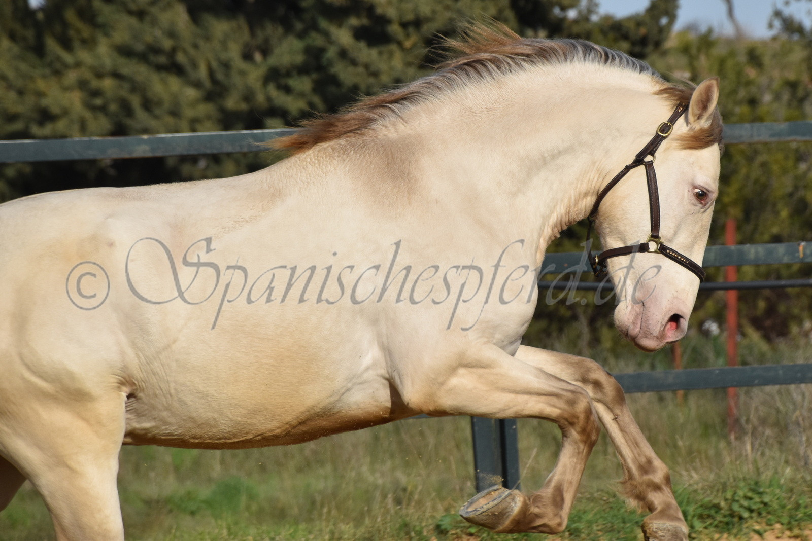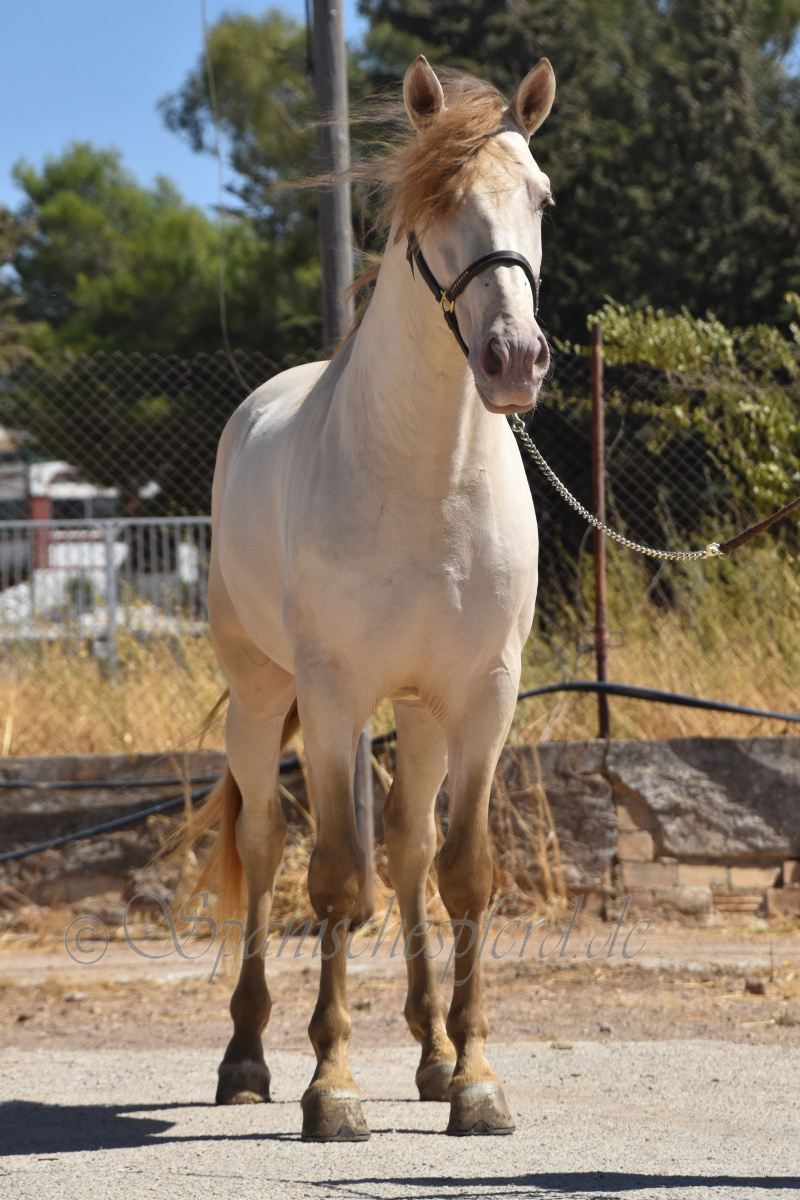 Imperico ist ein barocker, kompakter und mit selten schöner Farbe ausgestatteter und sehr sympatischer P.R.E. Hengst, Perla-Bayo mit grünen Augen (mit Farbtest), geboren 2020, Stockmass 1,62, er wurde dieses Jahr im Frühjahr schonend auf Wassertrense angeritten, ist super einfach im Handling und unter dem Sattel und immer freundlich und lieb bei allem was man von ihm verlangt, ruhiger und gutmütiger Charakter, neugierig und verspielt, keine Hengstmanieren, sehr bequem zu sitzen, auch im Gelände zeigt er sich unerschrocken und trittsicher, ein Traumpferd mit Traumfarbe welches seinen neuen Besitzer sicherlich ganz viel Freude bereiten wird. Videos auf Anfrage.