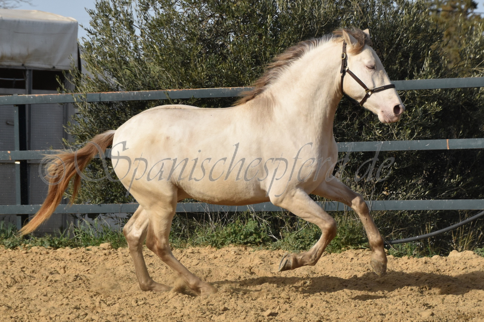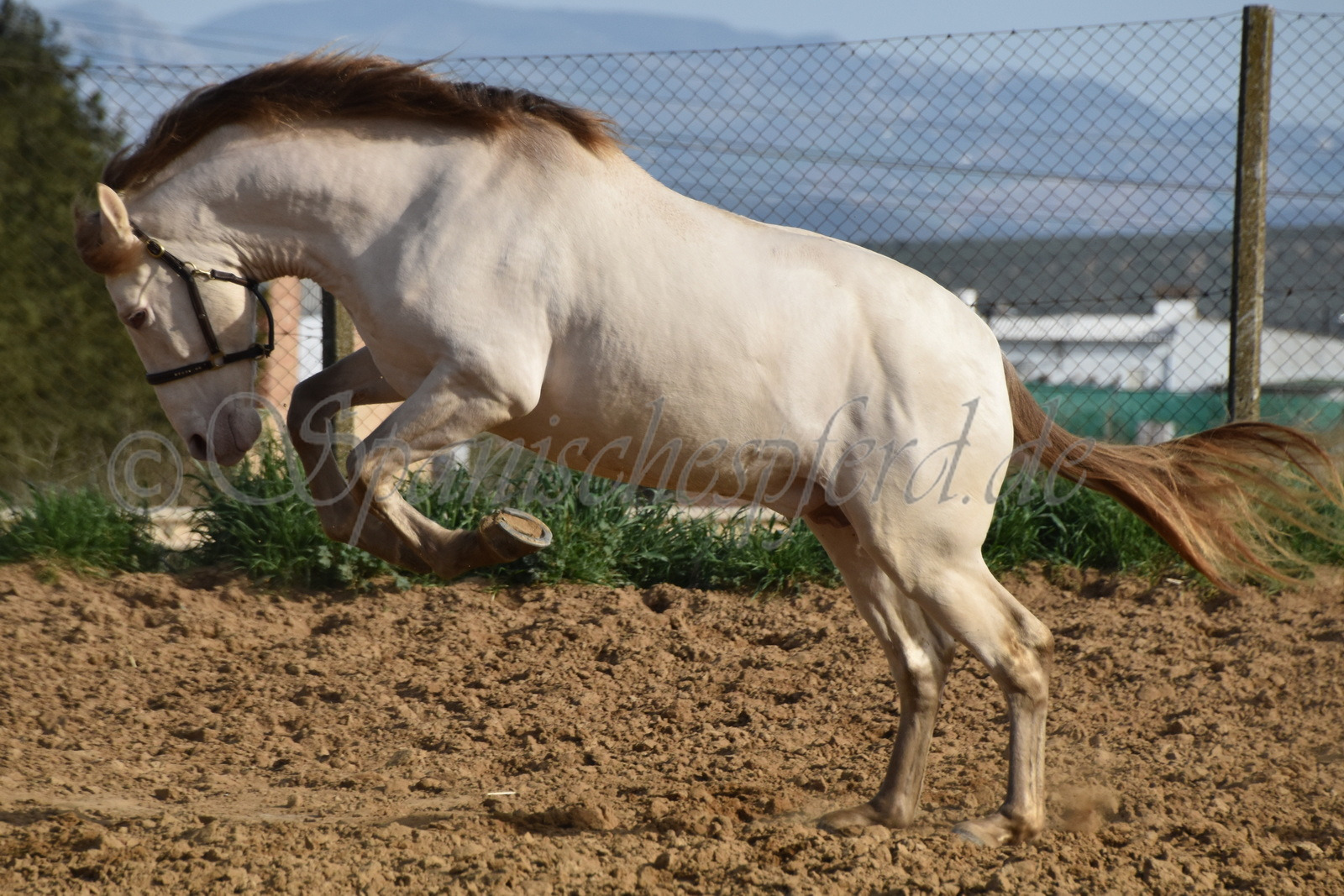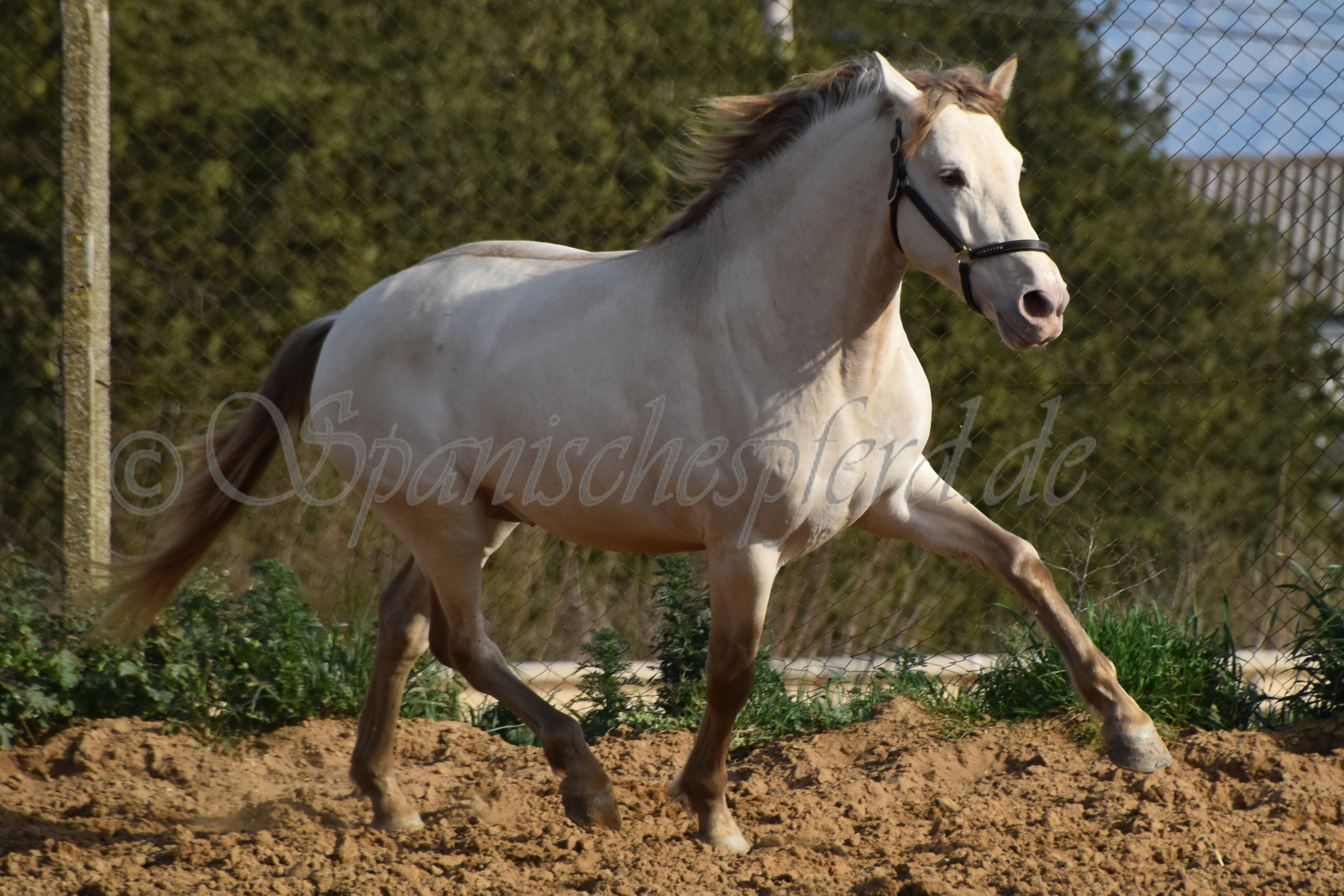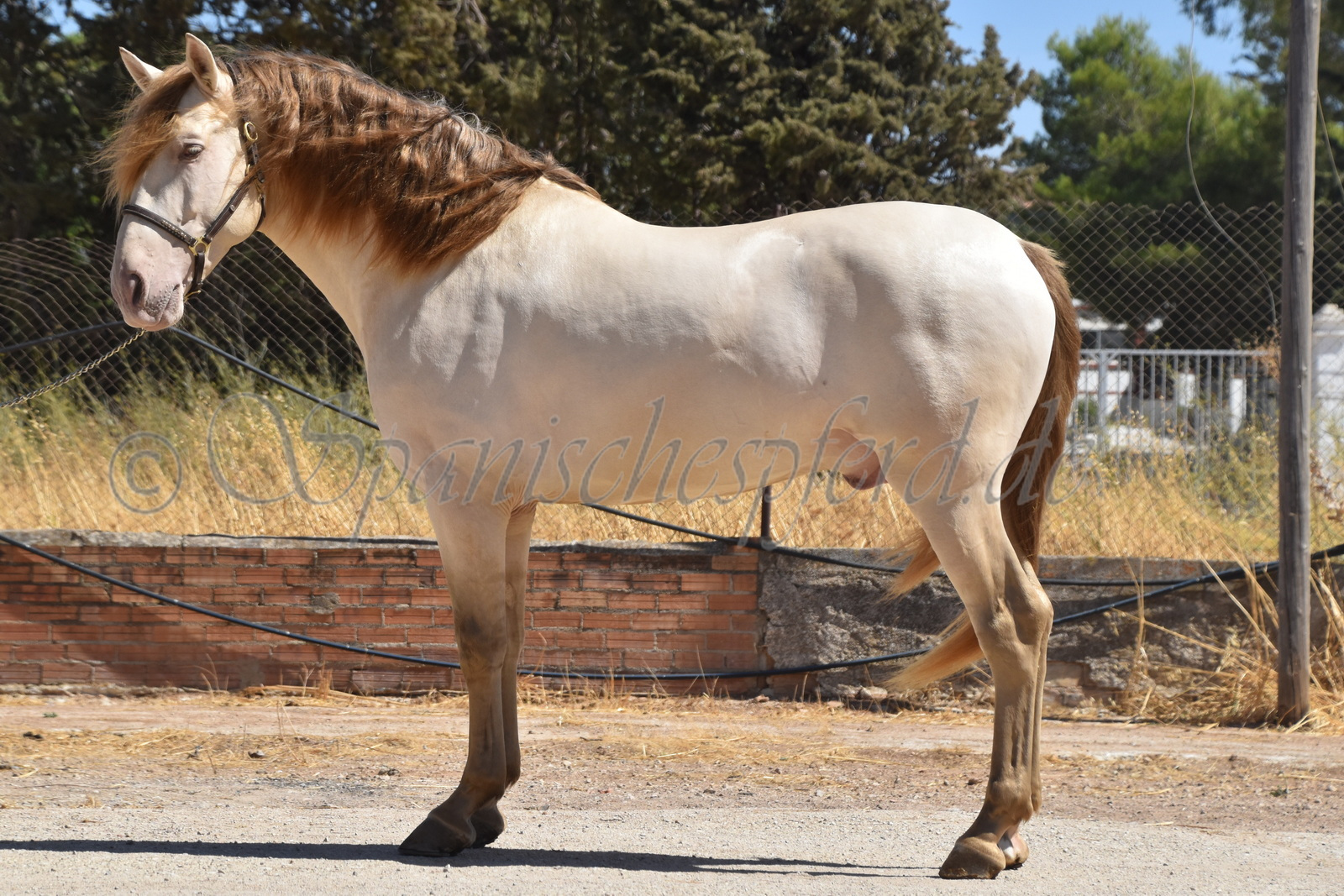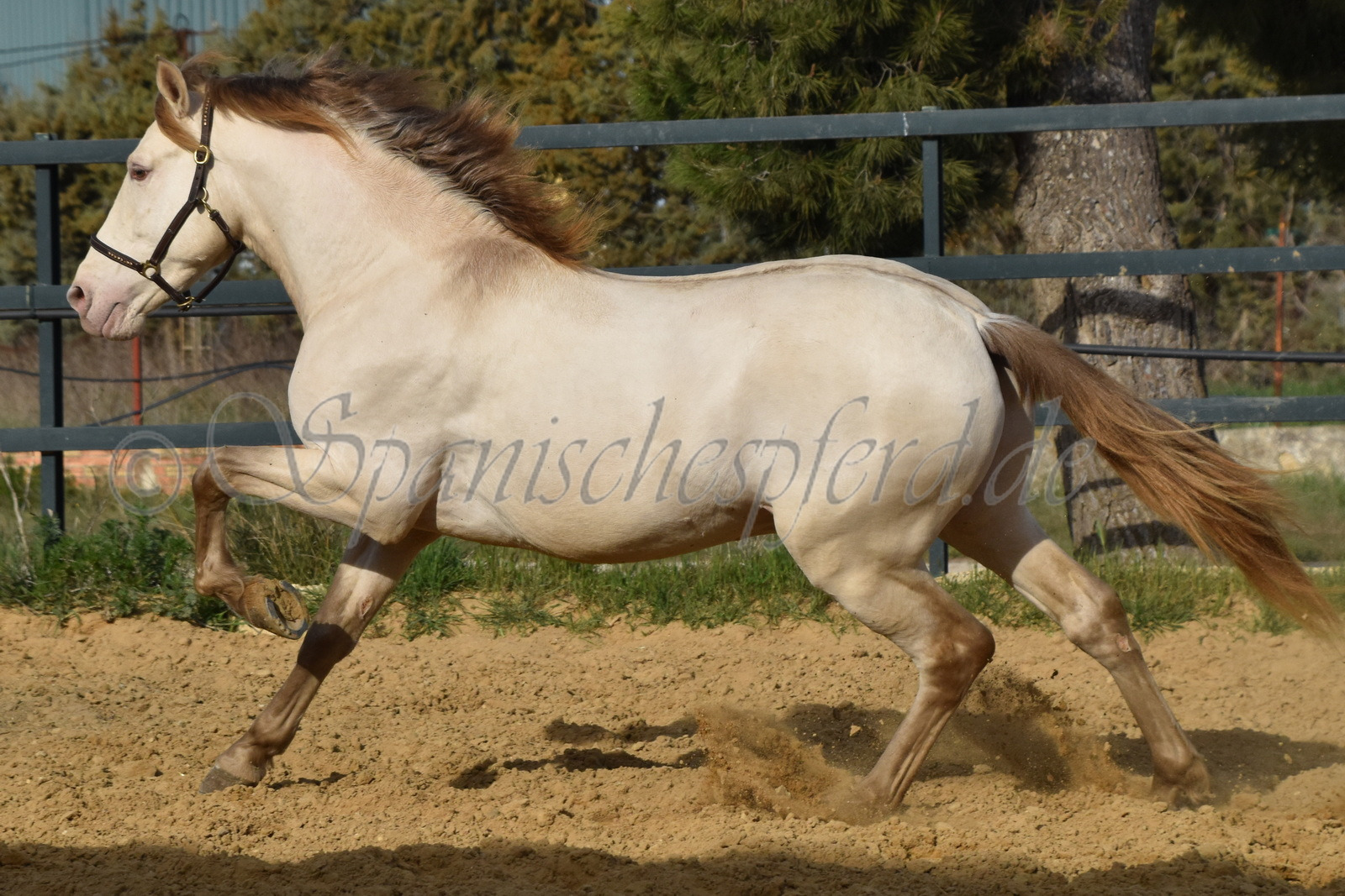 Imperico ist ein barocker, kompakter und mit selten schöner Farbe ausgestatteter und sehr sympatischer P.R.E. Hengst, Perla-Bayo mit grünen Augen (mit Farbtest), geboren 2020, Stockmass 1,62, er wurde dieses Jahr im Frühjahr schonend auf Wassertrense angeritten, ist super einfach im Handling und unter dem Sattel und immer freundlich und lieb bei allem was man von ihm verlangt, ruhiger und gutmütiger Charakter, neugierig und verspielt, keine Hengstmanieren, sehr bequem zu sitzen, auch im Gelände zeigt er sich unerschrocken und trittsicher, ein Traumpferd mit Traumfarbe welches seinen neuen Besitzer sicherlich ganz viel Freude bereiten wird. Videos auf Anfrage.