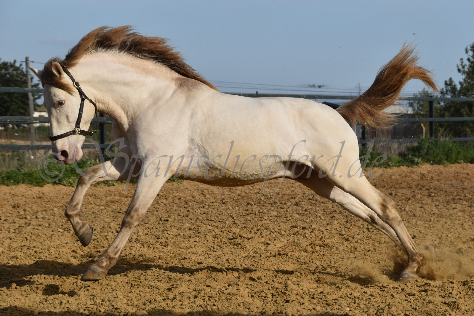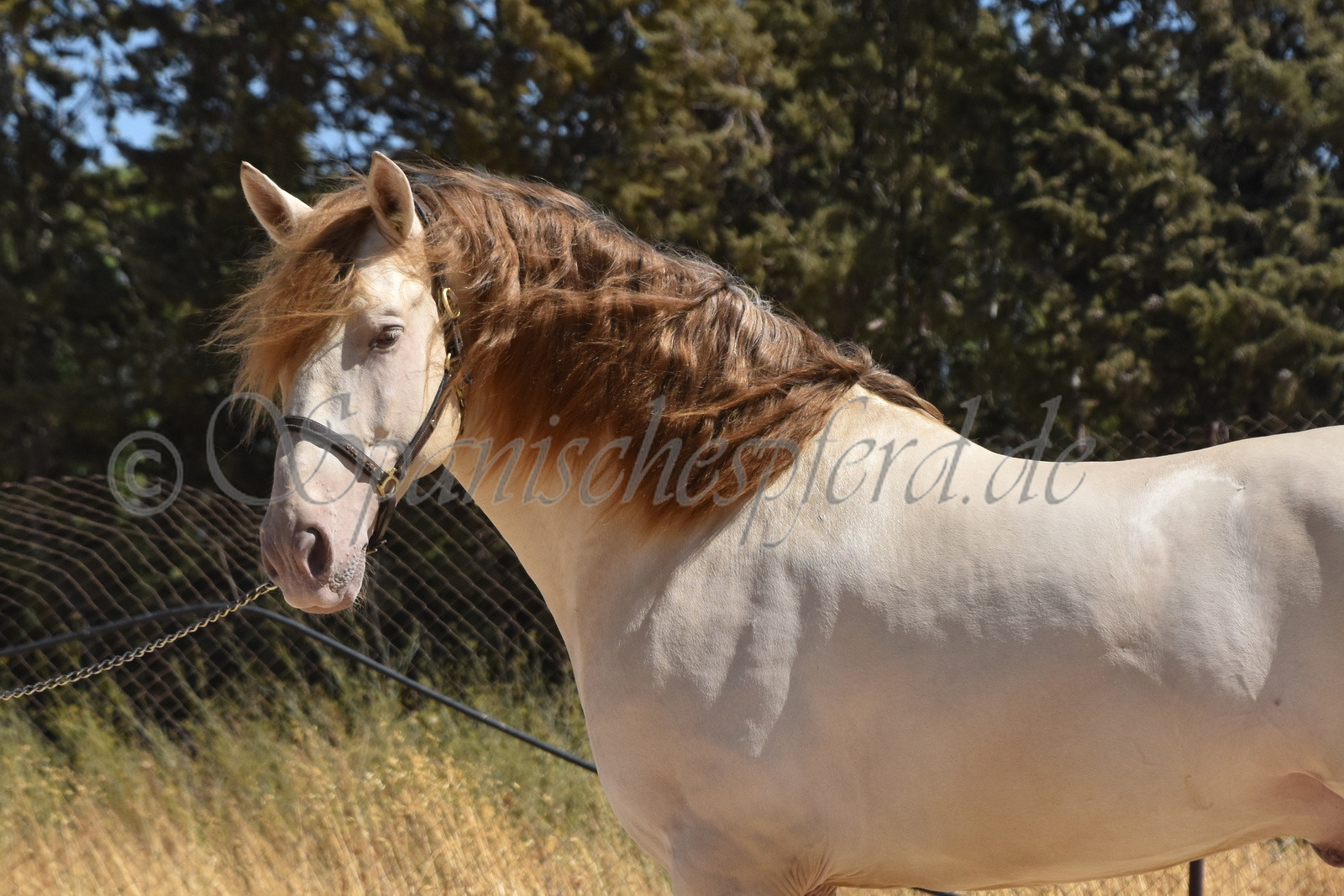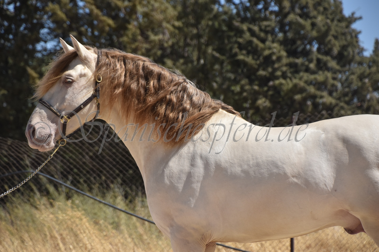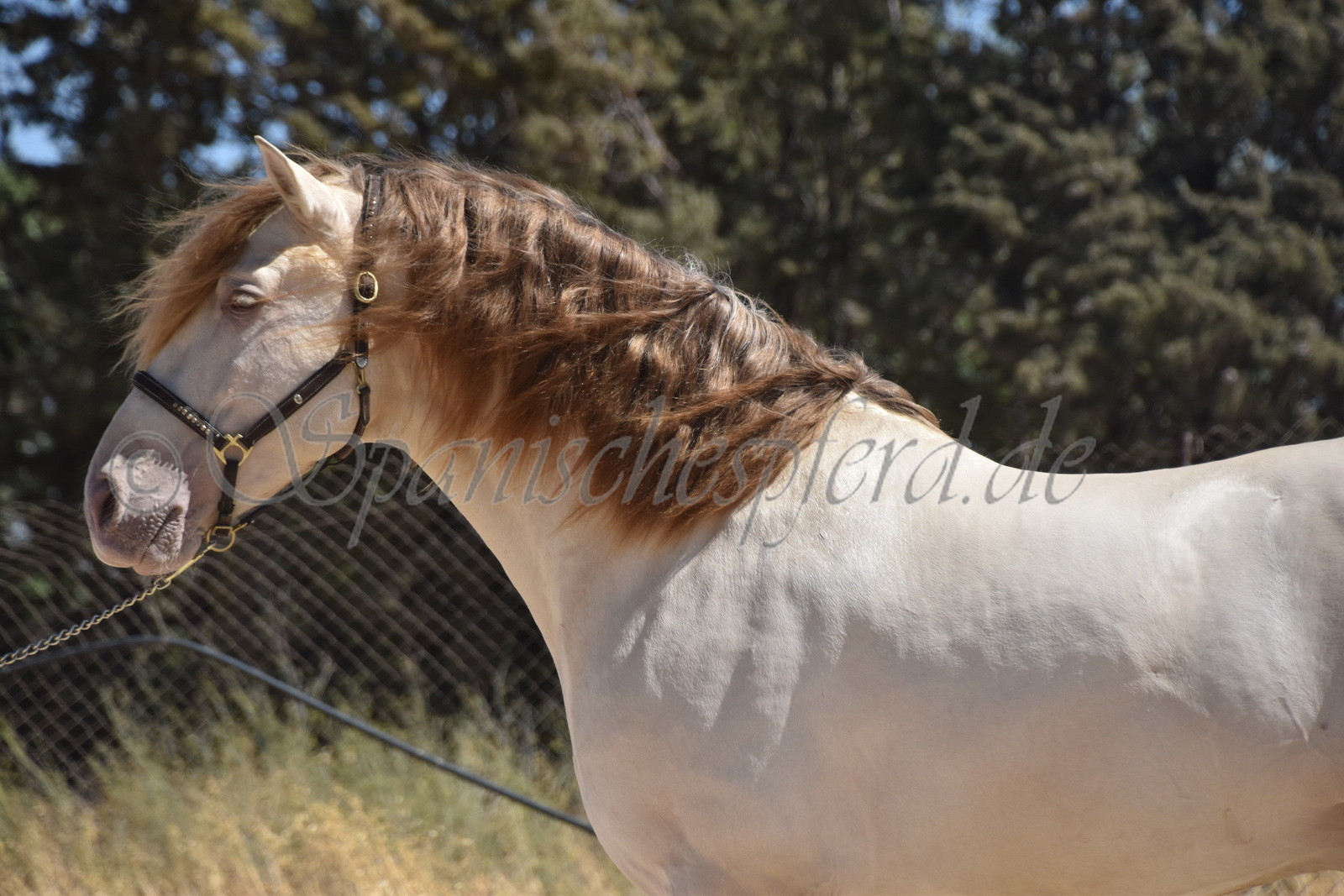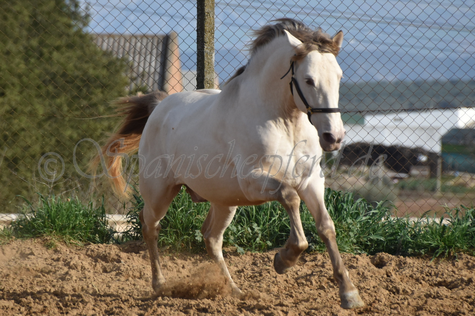 Imperico ist ein barocker, kompakter und mit selten schöner Farbe ausgestatteter und sehr sympatischer P.R.E. Hengst, Perla-Bayo mit grünen Augen (mit Farbtest), geboren 2020, Stockmass 1,62, er wurde dieses Jahr im Frühjahr schonend auf Wassertrense angeritten, ist super einfach im Handling und unter dem Sattel und immer freundlich und lieb bei allem was man von ihm verlangt, ruhiger und gutmütiger Charakter, neugierig und verspielt, keine Hengstmanieren, sehr bequem zu sitzen, auch im Gelände zeigt er sich unerschrocken und trittsicher, ein Traumpferd mit Traumfarbe welches seinen neuen Besitzer sicherlich ganz viel Freude bereiten wird. Videos auf Anfrage.