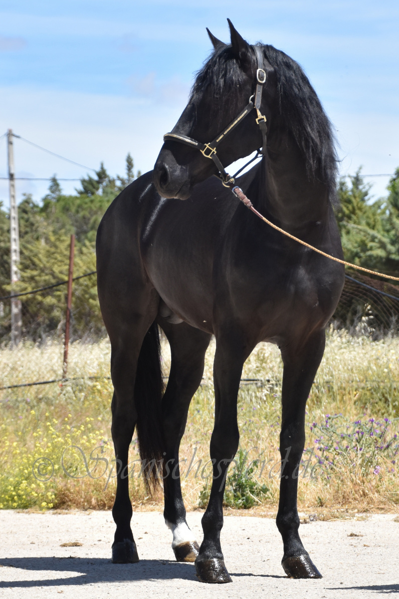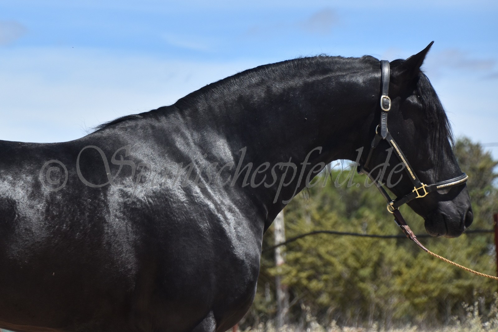 Trueno ist ein wunderschöner, eleganter und lackschwarzer P.R.E. Hengst mit astreinem und liebenswerten Charakter, geboren 2020, Stockmass 1,60, sehr menschenbezogen und freundlich, keinerlei Hengstmanieren, gute Bewegungen, wird gerade angeritten und benimmt sich dabei tadellos.